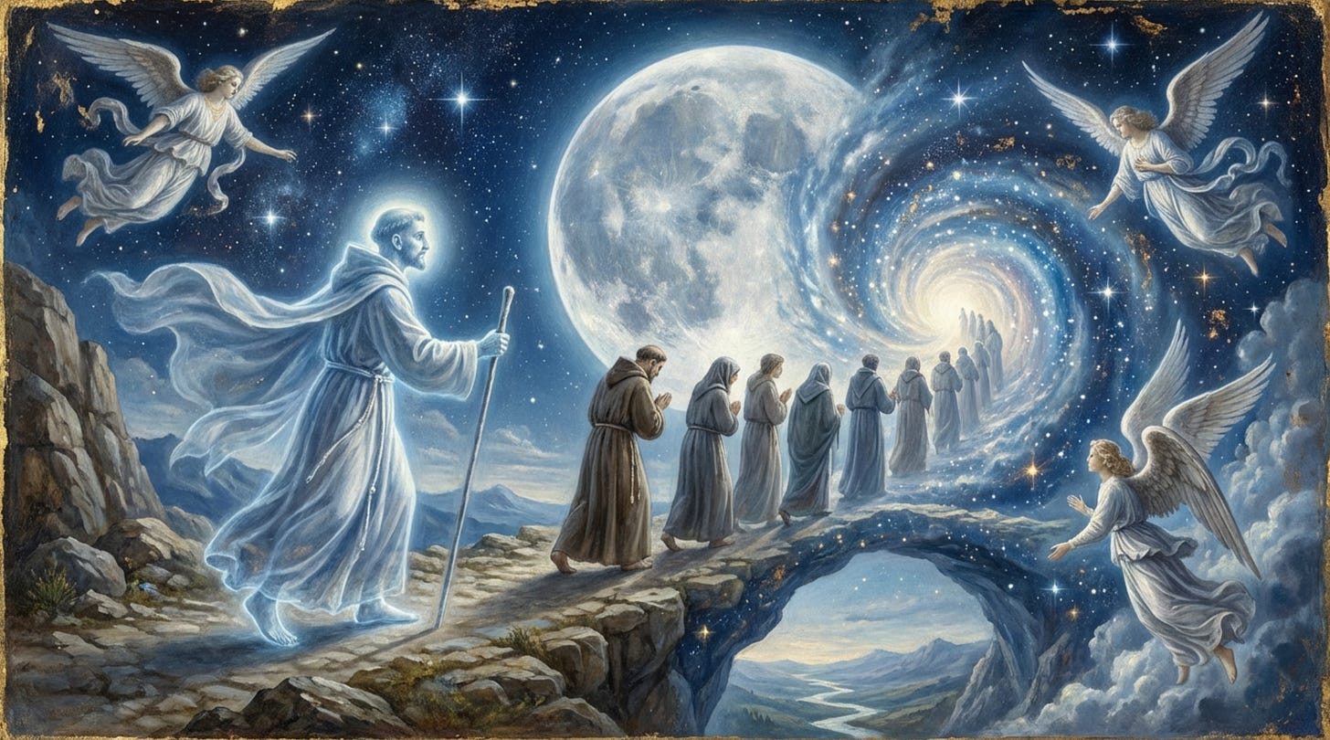 逻辑支撑:因为弗朗西斯已经通过“贫穷”排空了自我,他的灵魂变得极轻,能够轻易穿越重力场。他成了那些追求“空性”的西方觉者的引路人,类似于佛教中引导信徒往生净土的接引大圣。