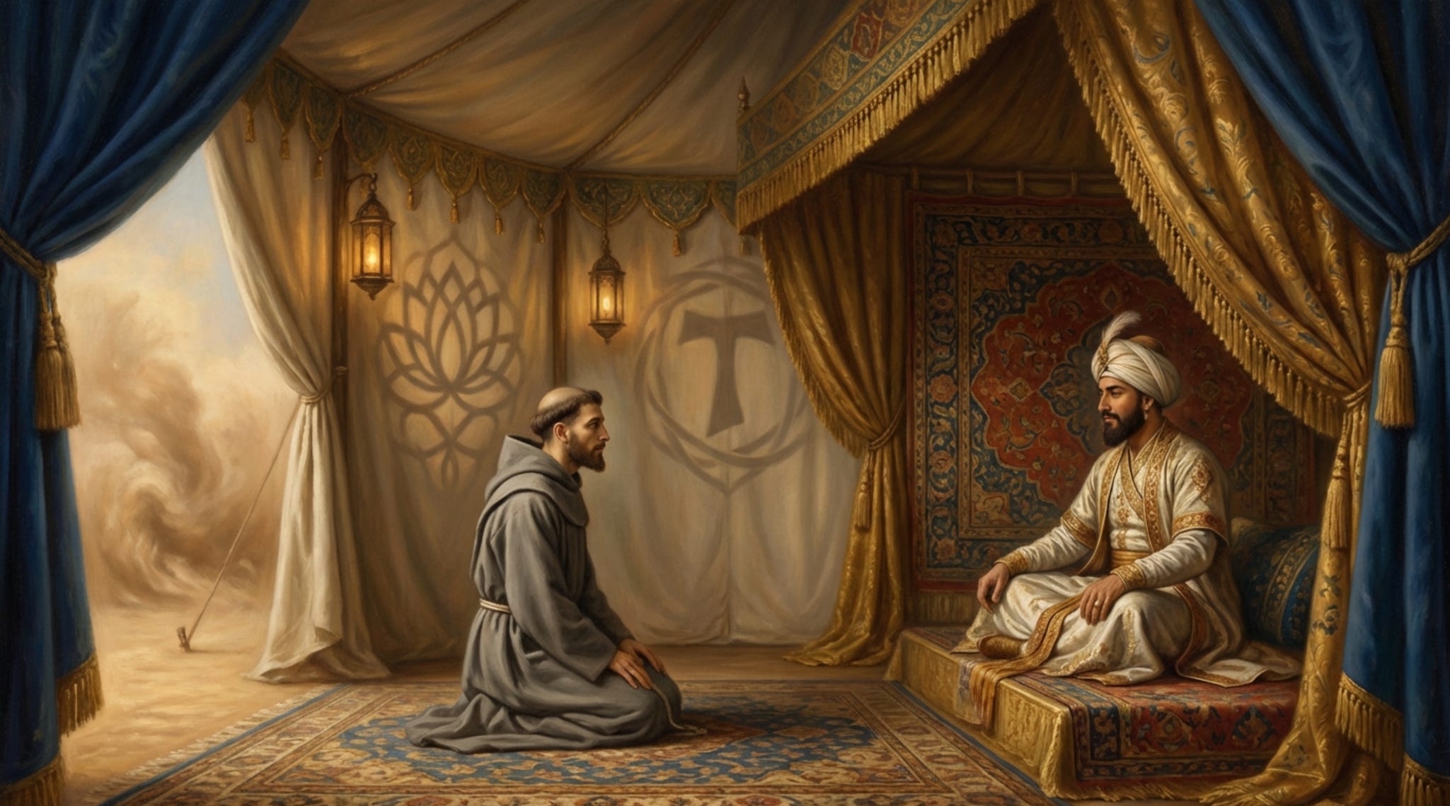 如果说《巴兰与约拿法》是理论的渗透,那么 1219 年的埃及达米埃塔之行,则是弗朗西斯与东方神秘主义最直接的“电火花碰撞”。