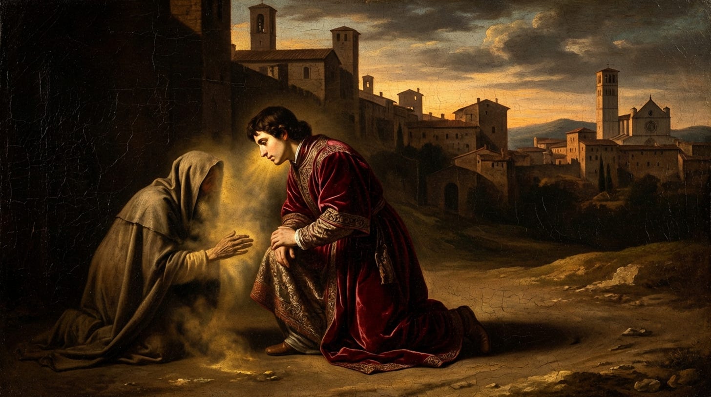 1206 年的亚西西郊外,圣达米亚诺教堂只是一座被野草和遗忘吞噬的废墟。就在这断壁残垣中,弗朗西斯经历了一场改写西方历史的“高维通讯”。